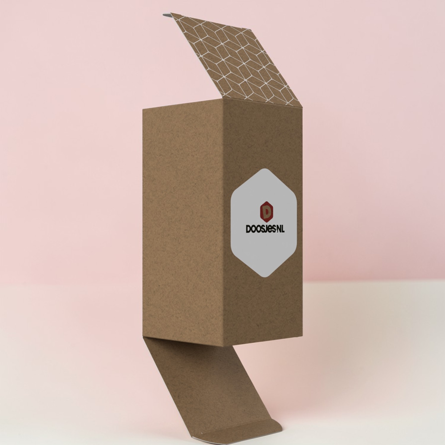 Doosje van kraftkarton met gespiegelde klepsluiting